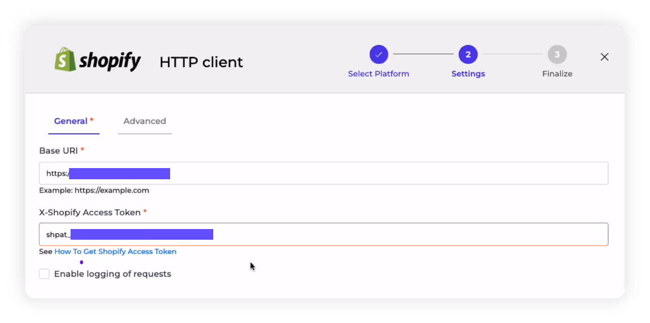 6. Finalize HTTP client: You can now finalize your HTTP client by checking its details and giving it a name. In this case, we will call it “Shopify HTTP client” and click on the “Save” button.