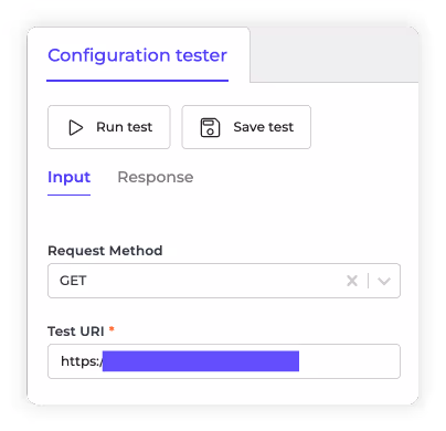 2. Within the “Configuration Tester,” we can run a test to see if Alumio can successfully pull data from Picqer by adding our URI and choosing a “Request Method.”