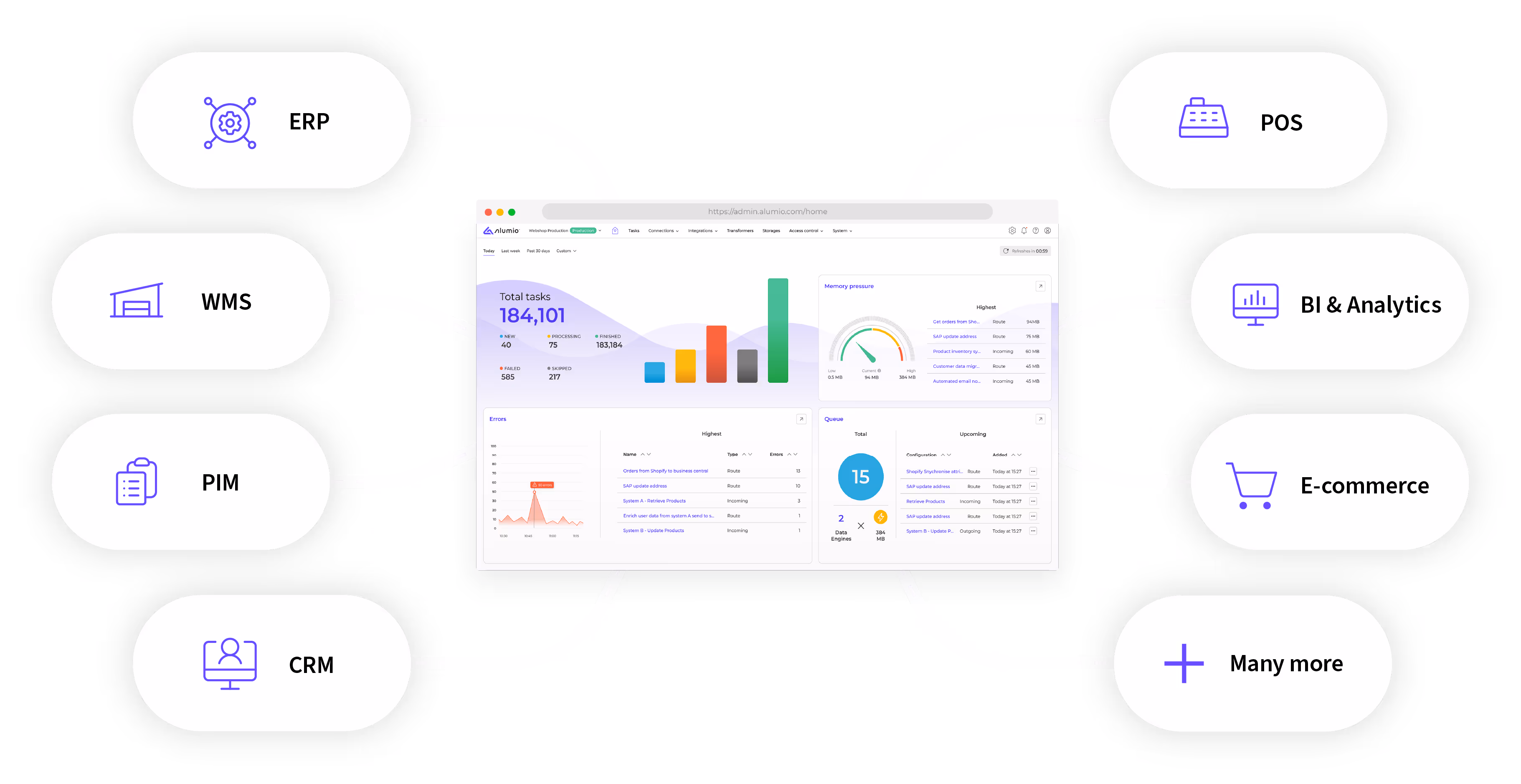 Alumio connects all your retail applications in real time, ensuring accurate product, pricing, and order information across every channel.